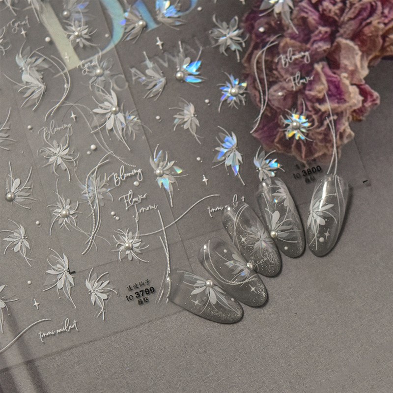 超仙晶钻美甲贴纸爆款日系复A古指甲贴工厂凌波仙子浮雕贴纸