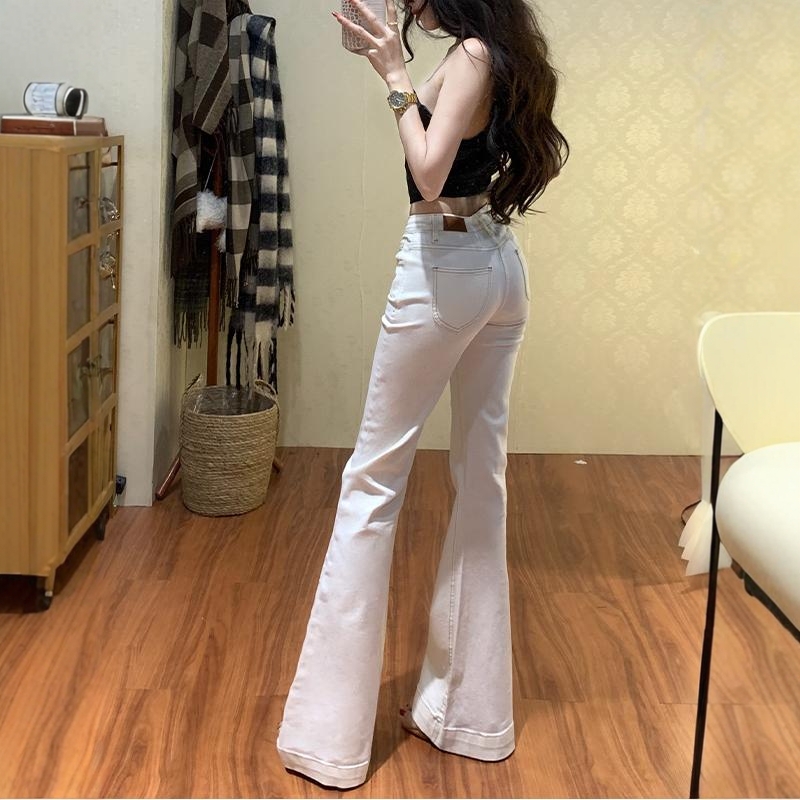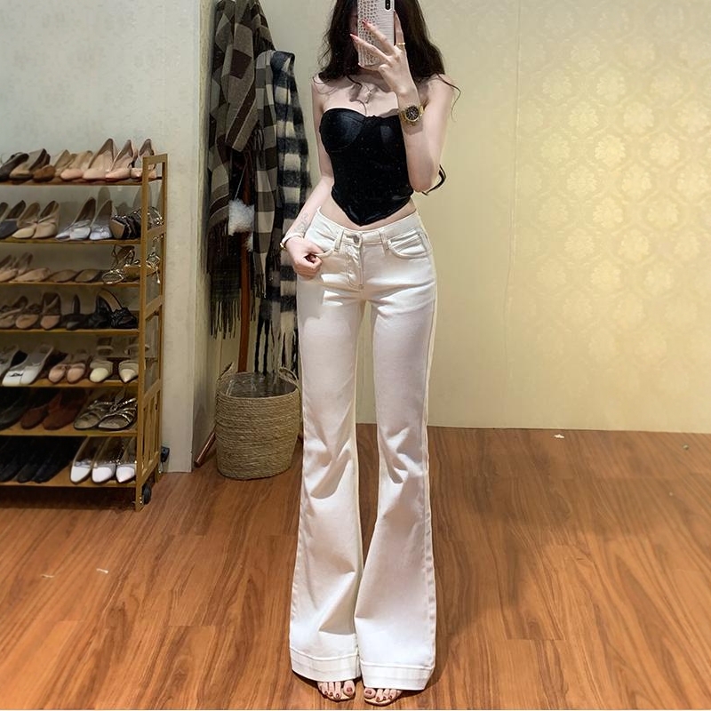 李李服饰韩女气质白色微喇牛仔裤女25秋季基础款高腰修身显瘦长裤