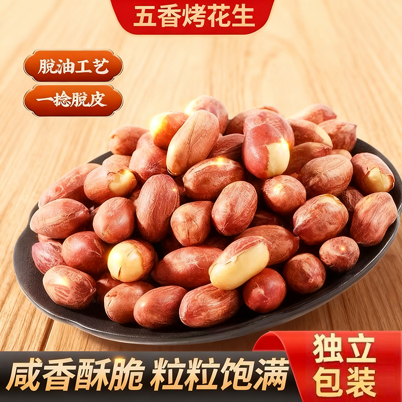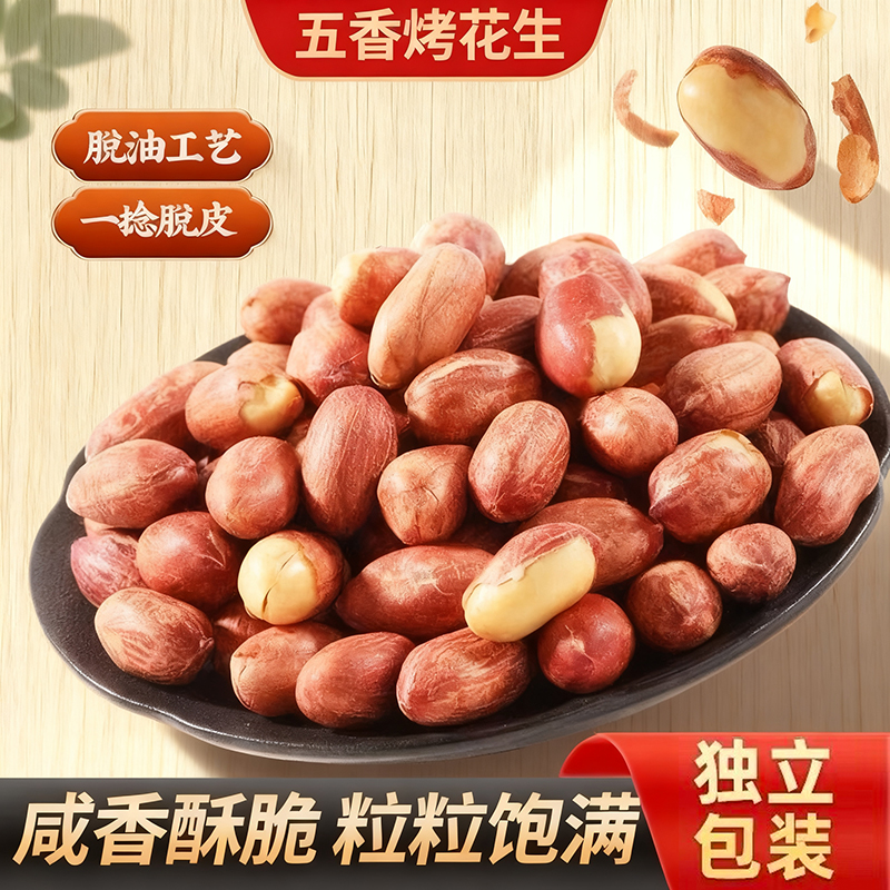 比比赞脱油花生米去壳花生五香味下酒菜炒货零食休闲食品小吃批BY