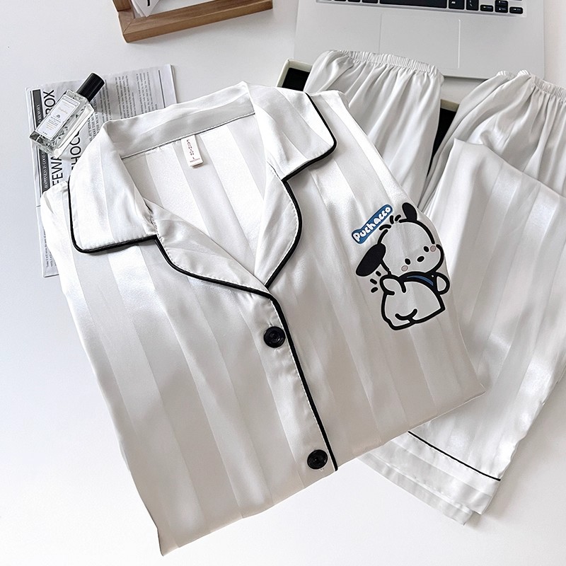 睡衣一男一女夏季长袖仿冰丝绸短袖家居服带胸垫休闲简约舒适薄款