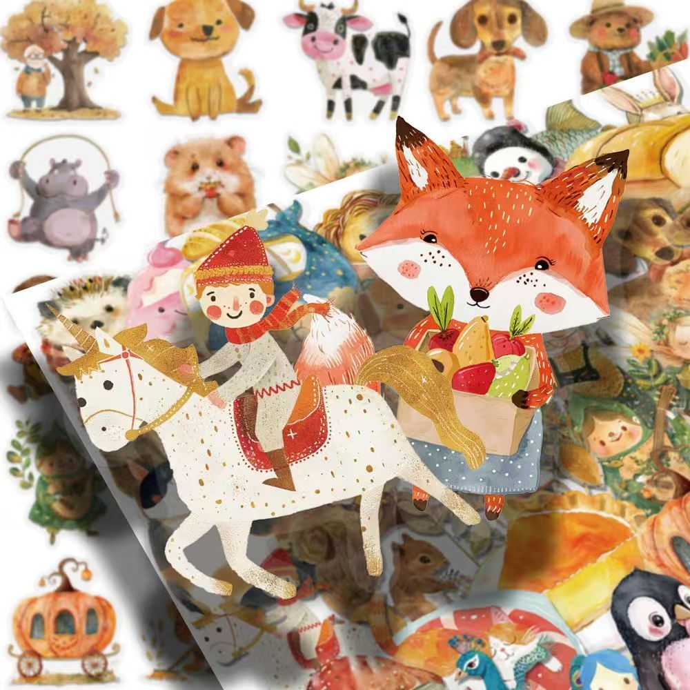100张PET童话贴纸小清新创意装饰贴画手机壳手账diy防水漫画贴画