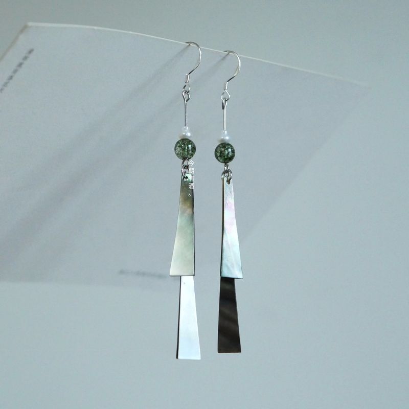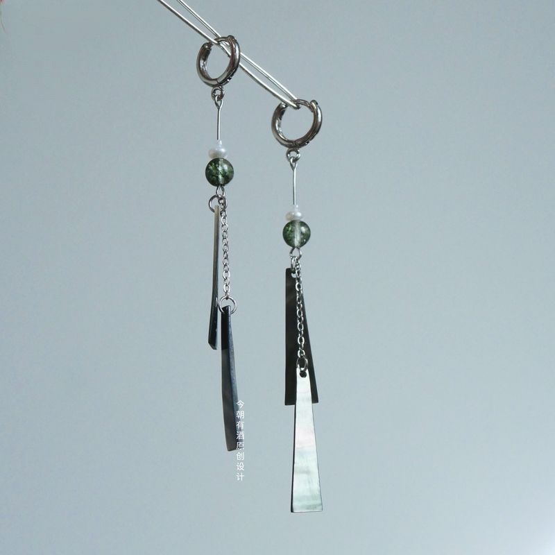 有风来信。会响的贝壳耳饰原创黑蝶贝耳环新中式复古风长款耳夹