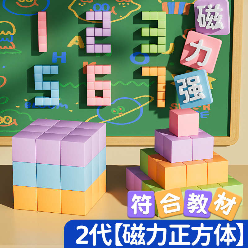 六面磁性正方体教具单色小正方体立体几何体模型小学4-6年级数学教具2cm小方块儿童观察积木立方体正方体学具