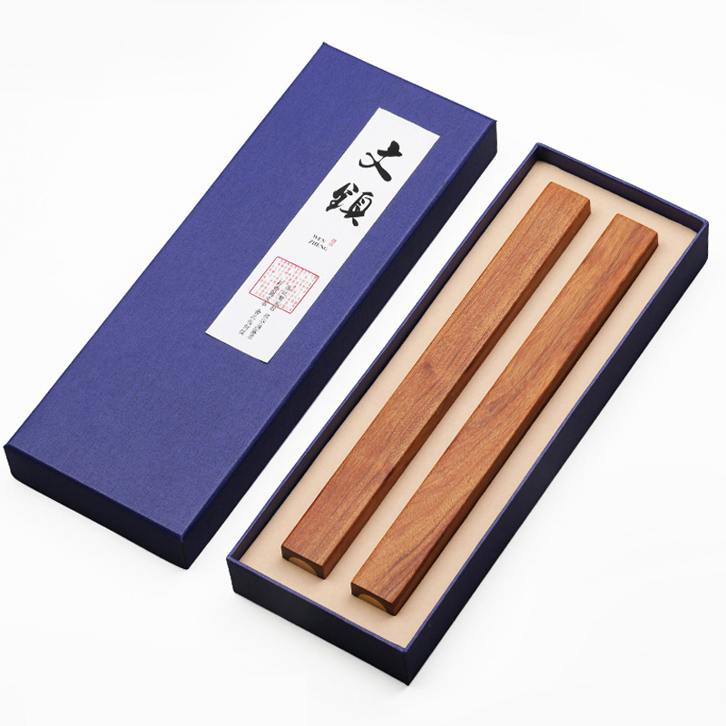 原木镇纸镇尺 实木质新中式文房四宝镇木毛笔书法专用压纸石框尺摆件 黄铜国画压书镇创意压条一对定制刻字