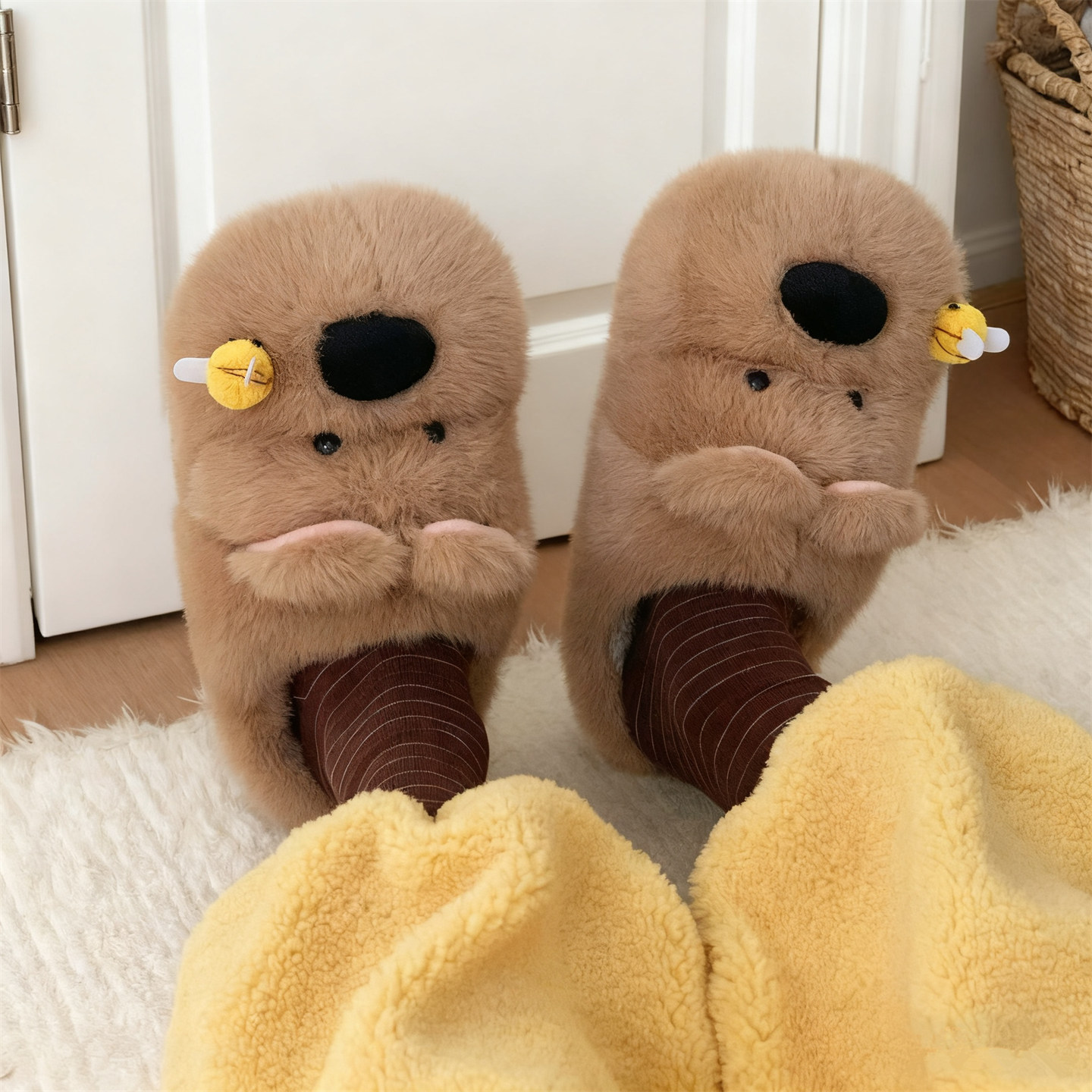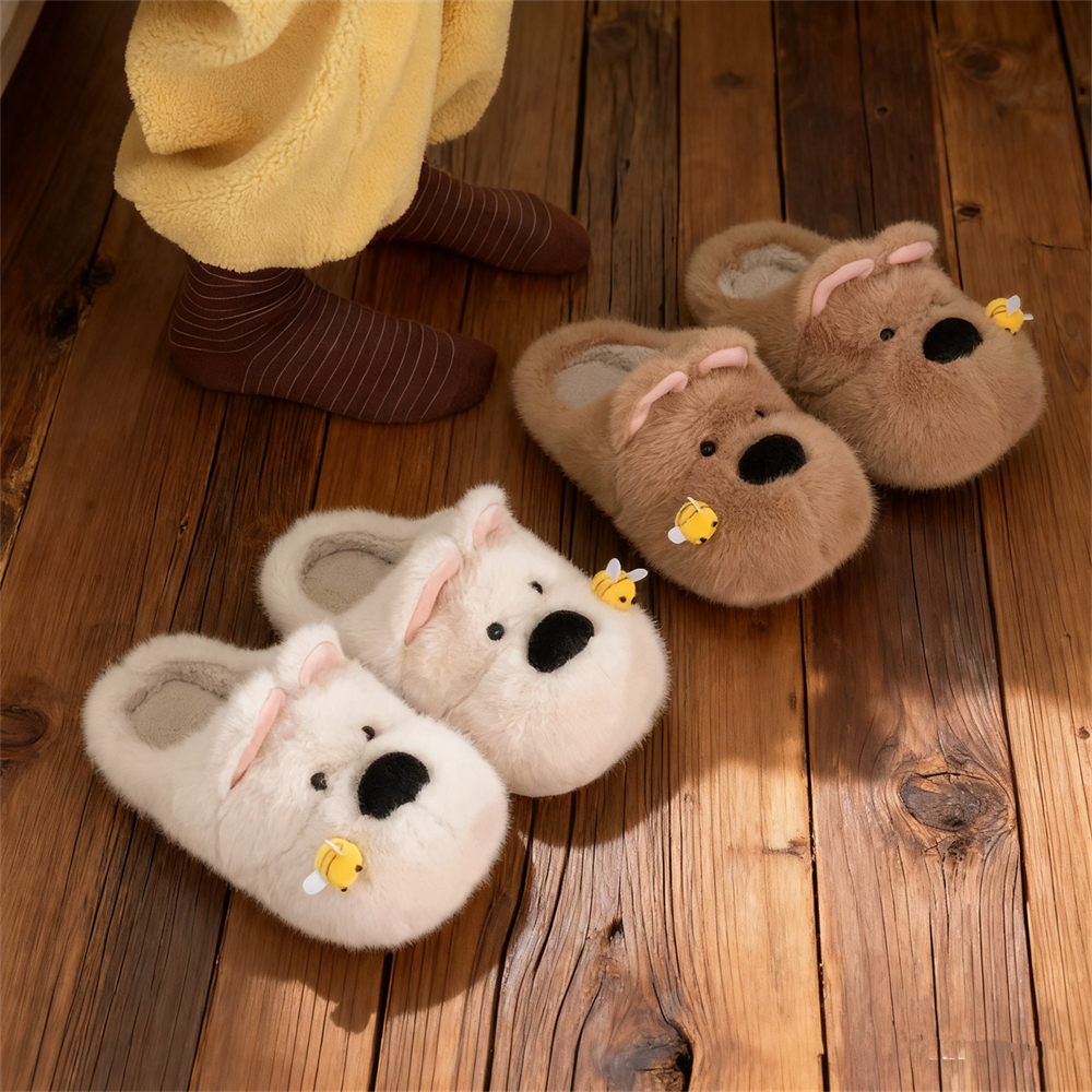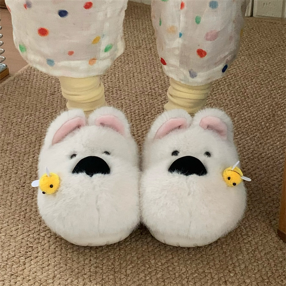 细细条 男女冬ins被蜜蜂蛰的西高地小狗棉拖鞋情侣居家防滑毛毛鞋
