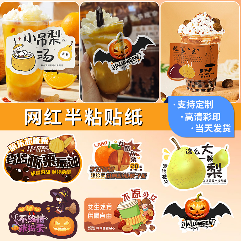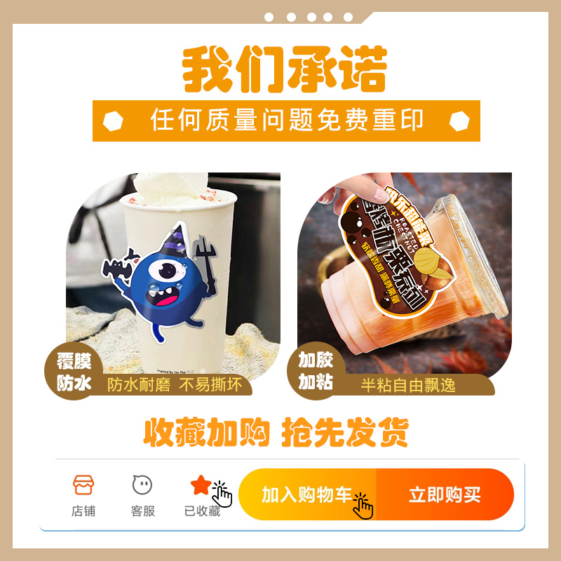 奶茶杯立体卡贴纸定制咖啡杯水果茶饮品杯异形贴纸设计一次性浮雕贴画广告商标LOGO图案设计二维码标签打印