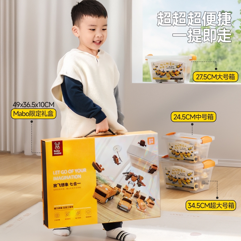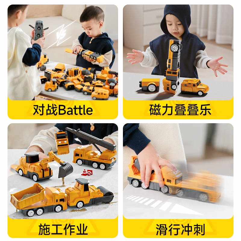 儿童磁力拼装百变工程车磁吸玩具车变形机器人积木男孩童6岁以上3