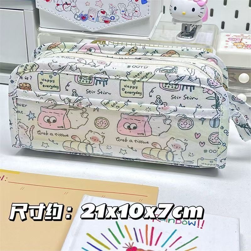 新款治愈小猫多功能痛包笔袋ins风学生大容量卡通印花文具收纳袋