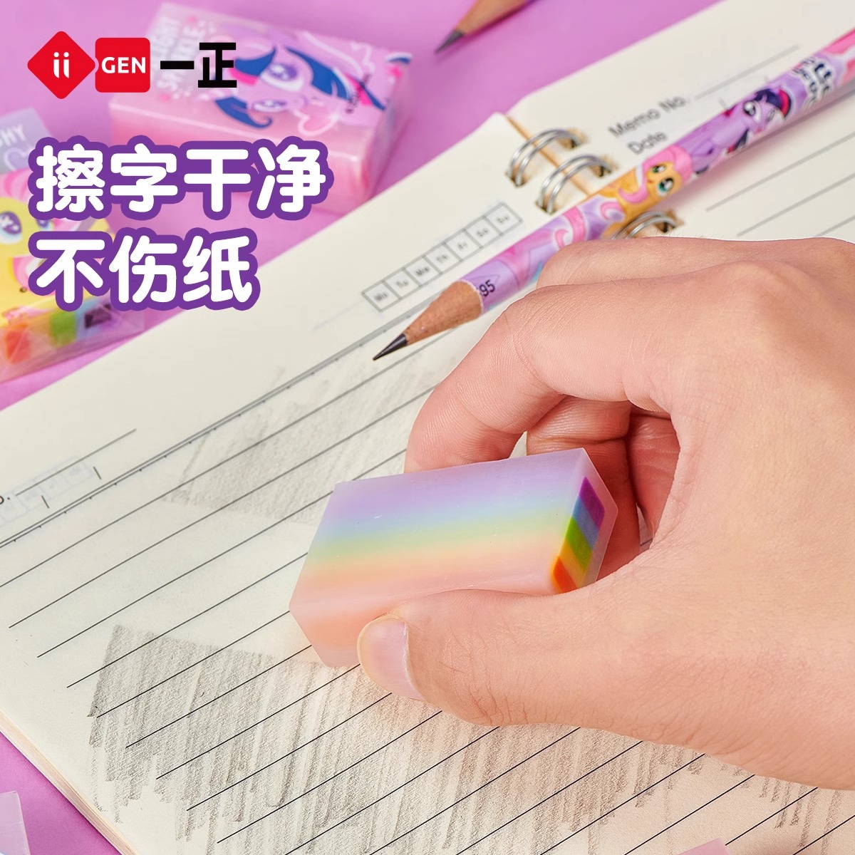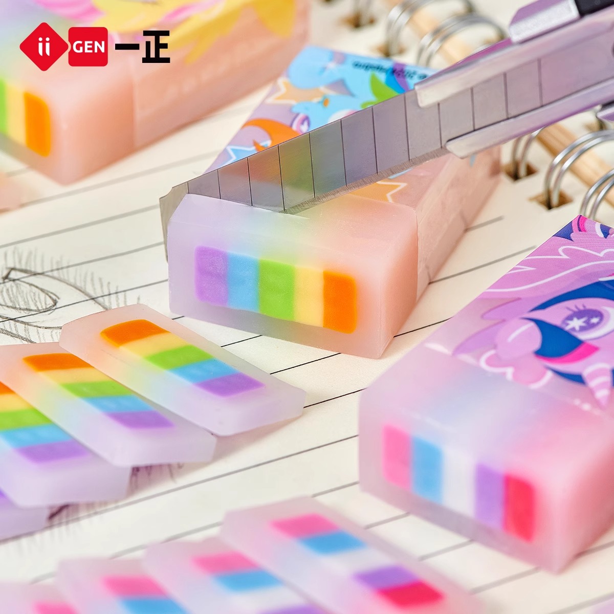 一正小马宝莉彩虹夹心果冻橡皮擦高颜值可切象皮卡通可爱幼儿园小学生用擦得干净无碎屑美术创意铅笔像皮文具