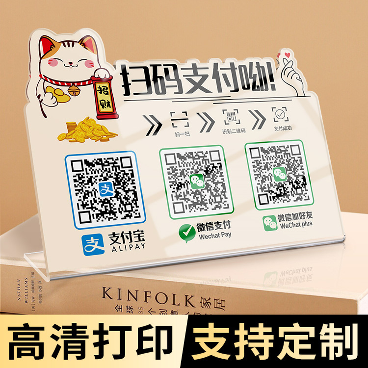 收银二维码摆台收款码展示牌定制微信支付宝商家亚克力收钱牌扫码牌子制作2025新款收付款信息牌摆摊立牌定做