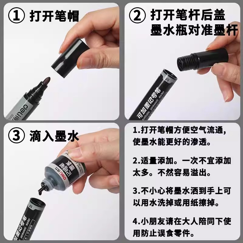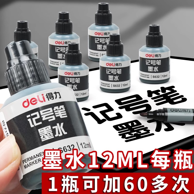 得力可加墨油性记号笔防水防油不掉色速干大头笔油性笔墨水快递工地专用可以勾线笔黑色红色马克笔粗木工加水