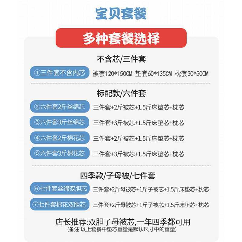 花花公子幼儿园牛奶绒被子三件套加厚冬季宝宝入园午睡六件套被褥