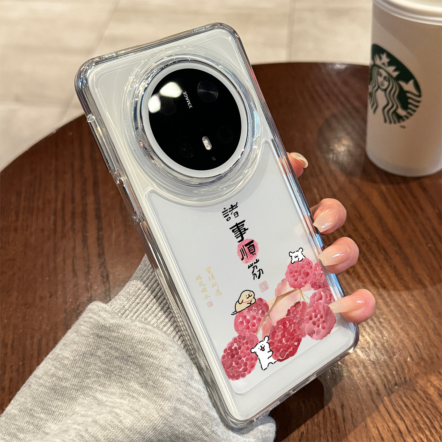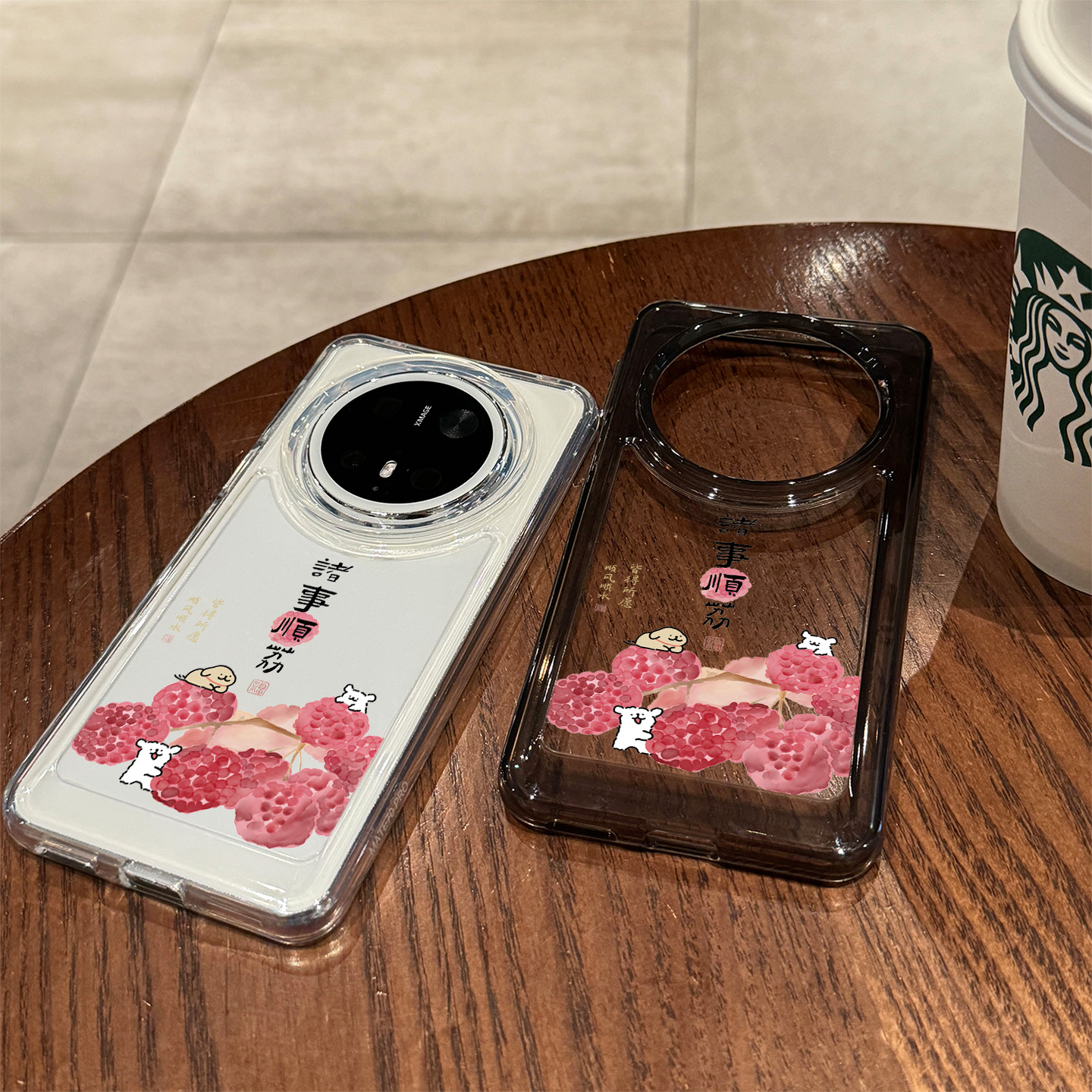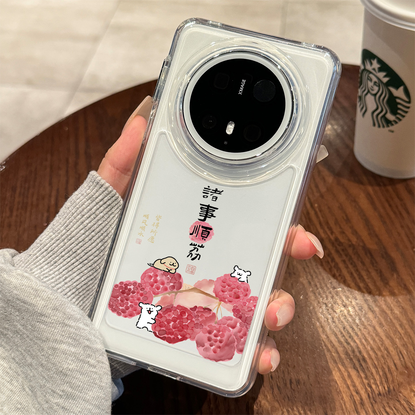 适用华为mate70pro+的新款手机壳诸事顺荔mt70线条小狗meta60por女款高级感50e全包防摔40epro小众透明保护套