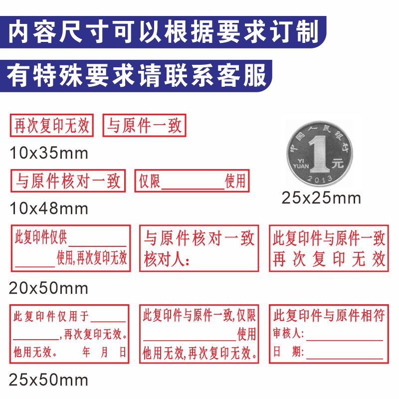 光敏章再次复印无效印章与原件核对一致章复印件与原件一致章仅供使用刻字印章定订做附件会计用万次章方形章