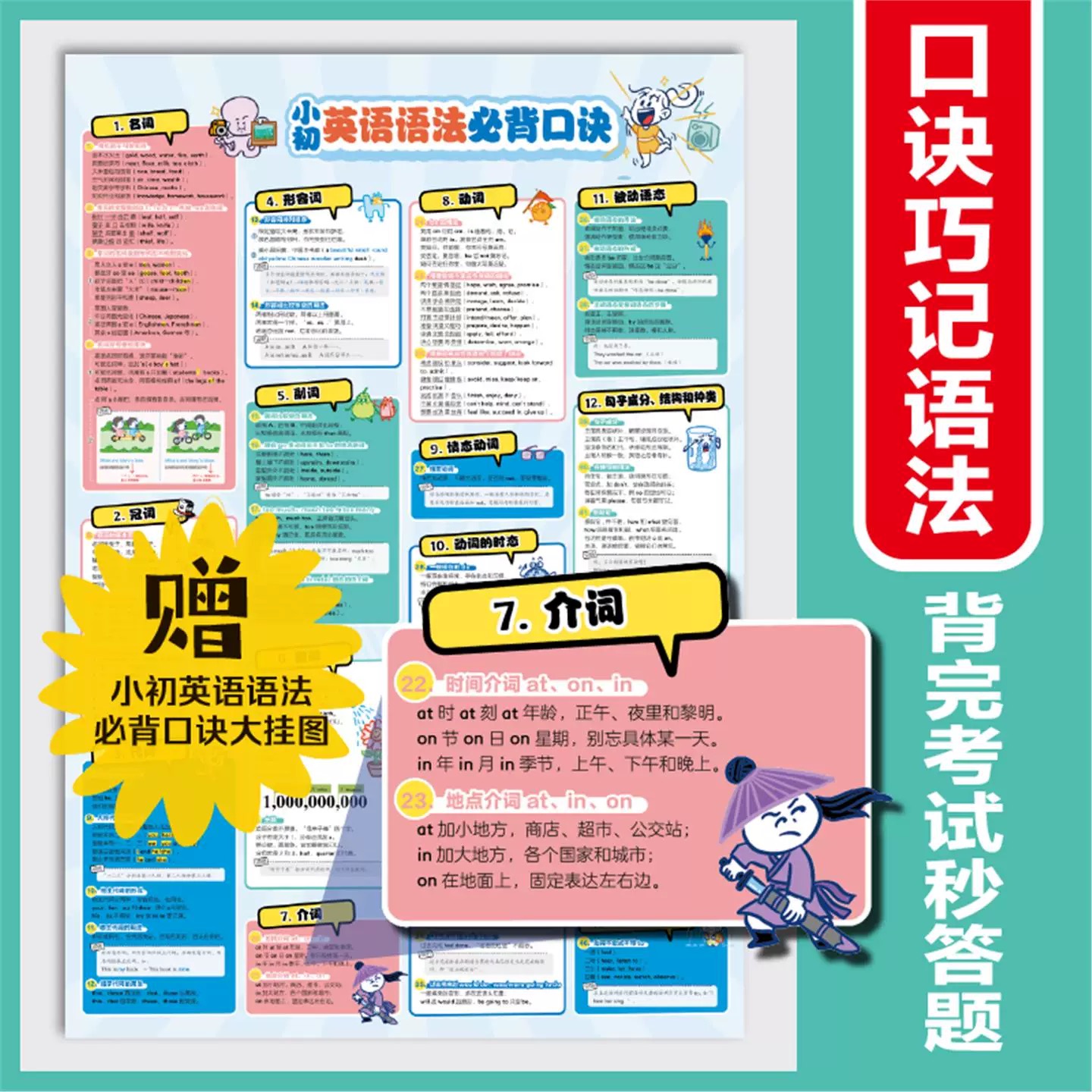 开心漫画200问小初语法提前学双拼速记1700词小学初中英语单词作文书三四五六年级思维导图音标词汇句型知识点大全一本通自然拼读