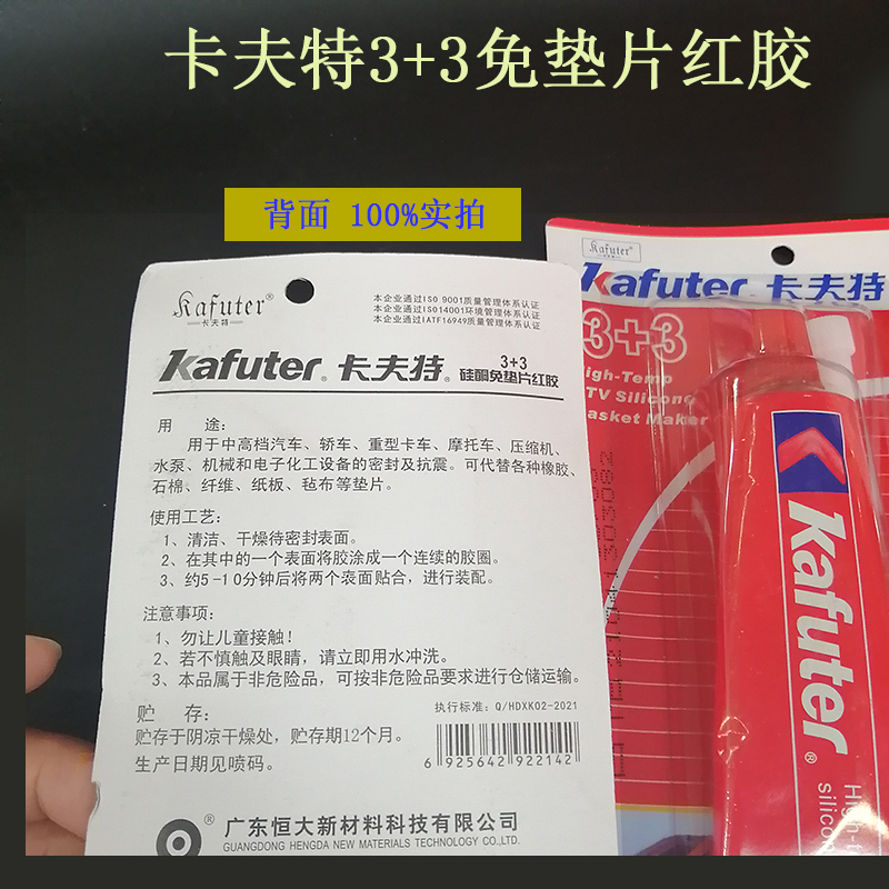 如假包赔卡夫特3+3红胶硅酮免垫片密封汽车发动机维修防油耐高温