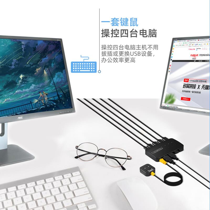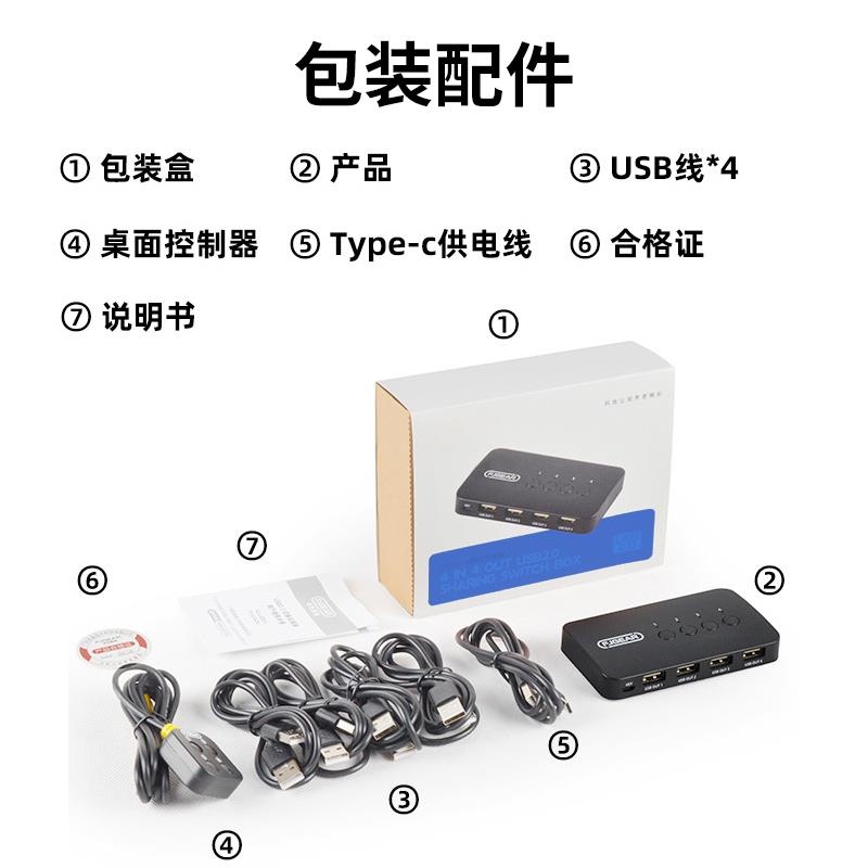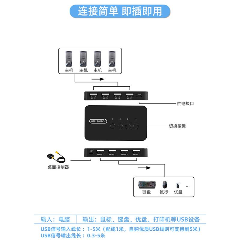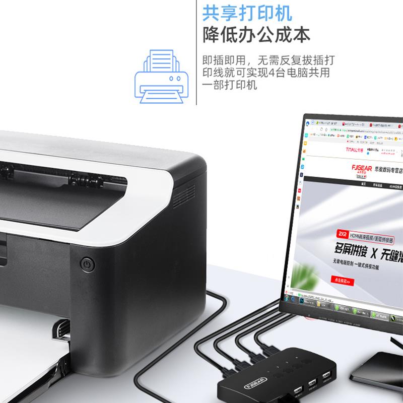 usb切换器两台电脑主机共用键盘鼠标共享打印机分线器4进4出分接器一拖二2进4双一分四键多接口数据