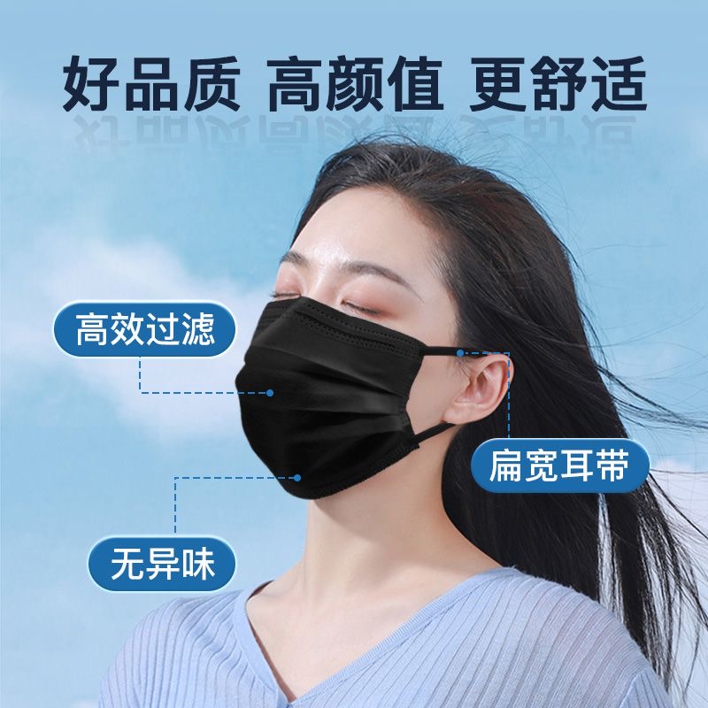 黑色口罩一次性医疗女高颜值医用外科正品官方旗舰店2025新款潮款