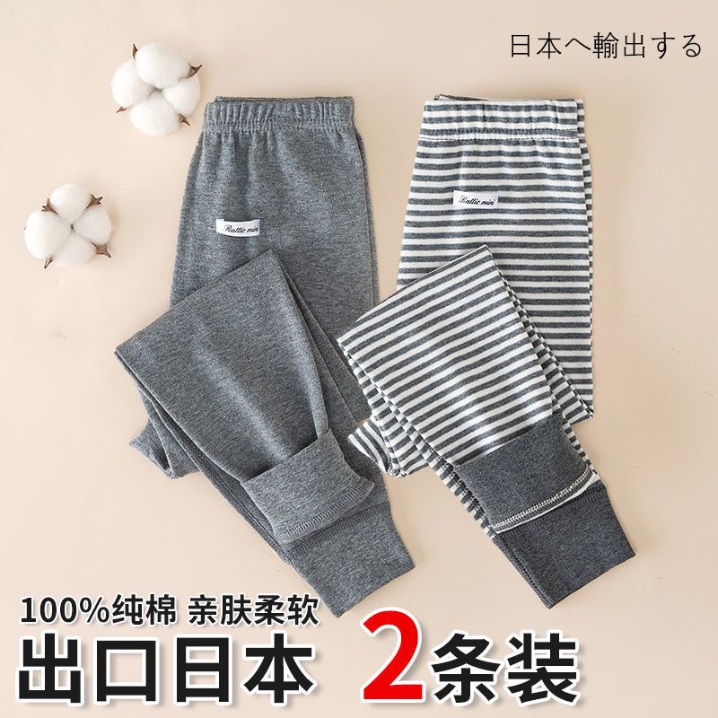 日系2件装儿童秋裤全棉男女童打底裤纯棉保暖长裤子宝宝棉毛裤A类