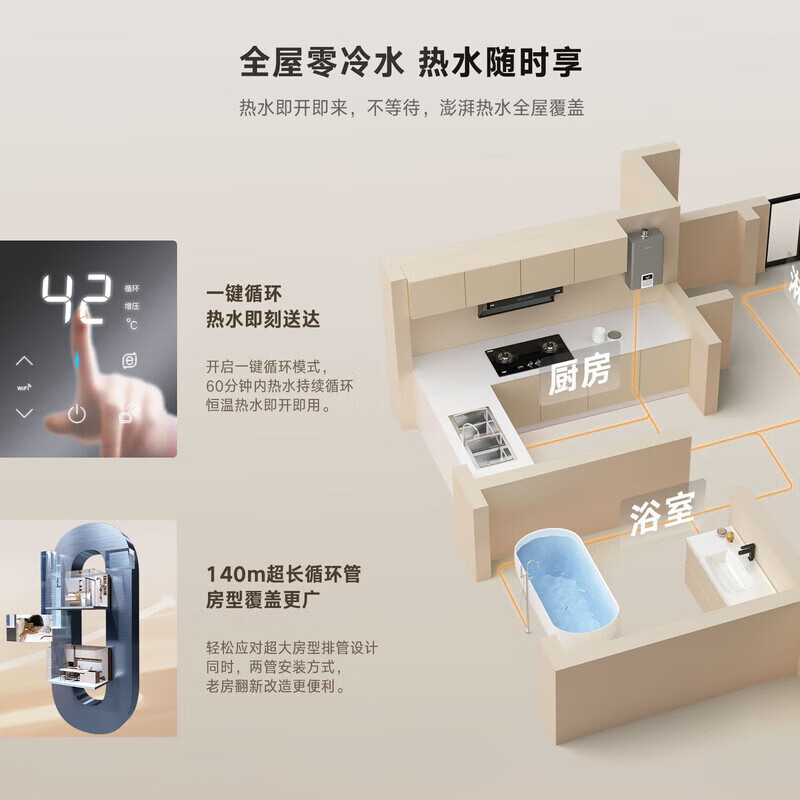 林内燃气热水器全屋零冷水E42G增压大水量APP智控水量伺服E41G