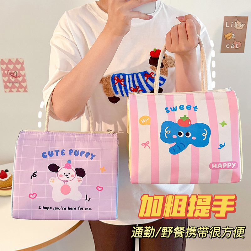 卡通萌宠保温袋上班族学生带饭包手提便当包大容量铝箔保温饭盒袋
