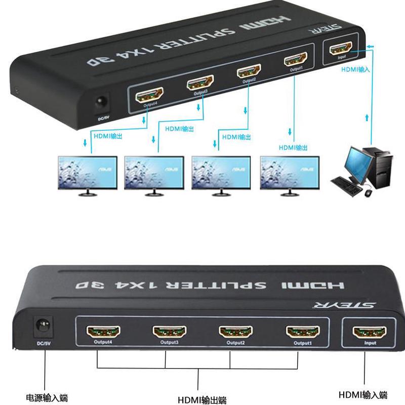 HDMI分配器一分四出四台显示同样画面,一进八出4K高清视频分配器