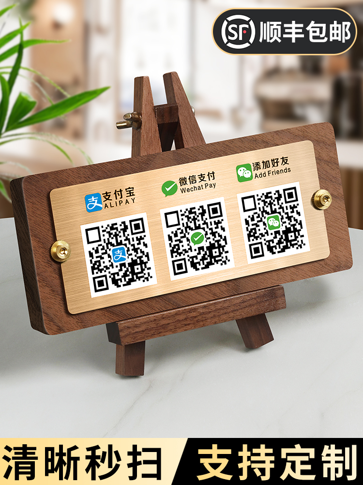 二维码展示牌微信支付宝收付款码制作打印定制商家创意木质立牌店铺收银台高级支架摆台扫一扫加好友付钱牌子