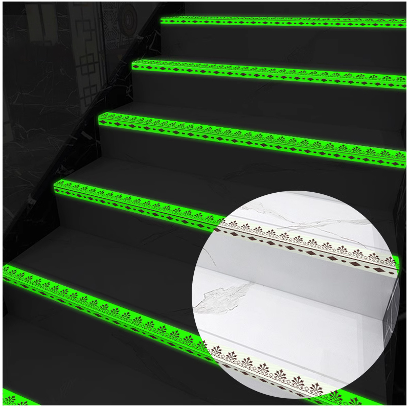 楼梯夜光防滑贴黑夜自发光自粘地贴提示牌舞台定位夜间警示胶复古楼梯贴纸贴光美化装饰防撞条台阶防水耐磨