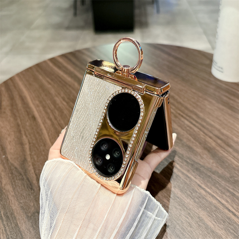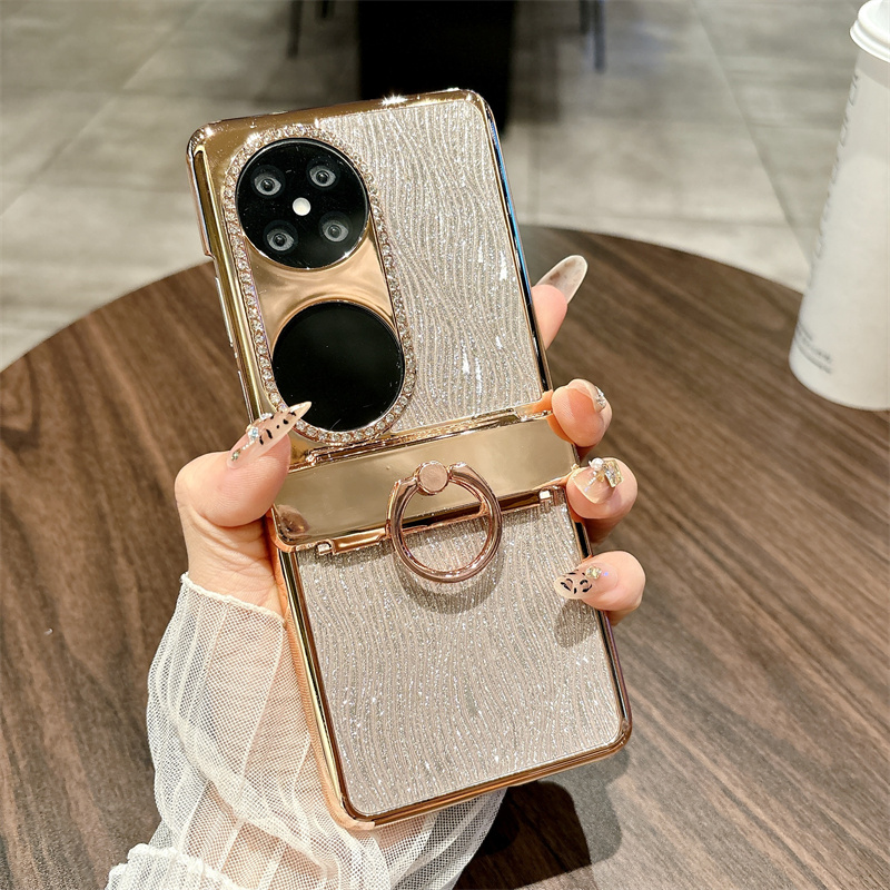 适用于华为pocket2手机壳水波纹带钻闪粉连体指环支架p50Pocket-S2折叠侧边铰链全包防摔钻石手绳保护套潮女