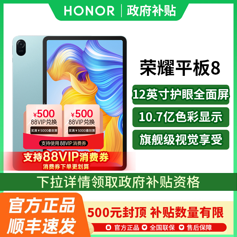【政府补贴至高500元】honor/荣耀 平板 8 12英寸高清护眼全面屏商务办公游戏学生儿童学习安卓平板电脑pad