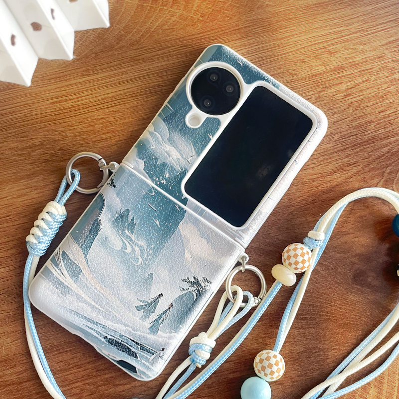 新中式流云似水适用荣耀magicvflip手机壳带挂绳p50pocket皮纹zflip6/5/4铰链全包防摔findn3复古国风mixflip