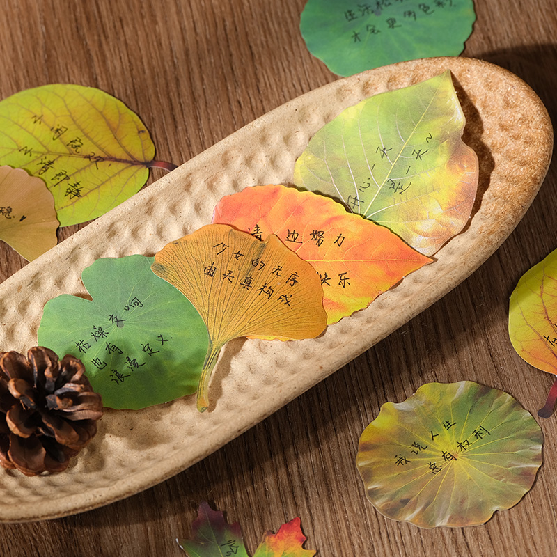 语闲 新中式叶随影国风异形树叶便签纸仿真树叶素材纸60张入 无粘性古风枫叶银杏留言手帐拼贴装饰全套共4款