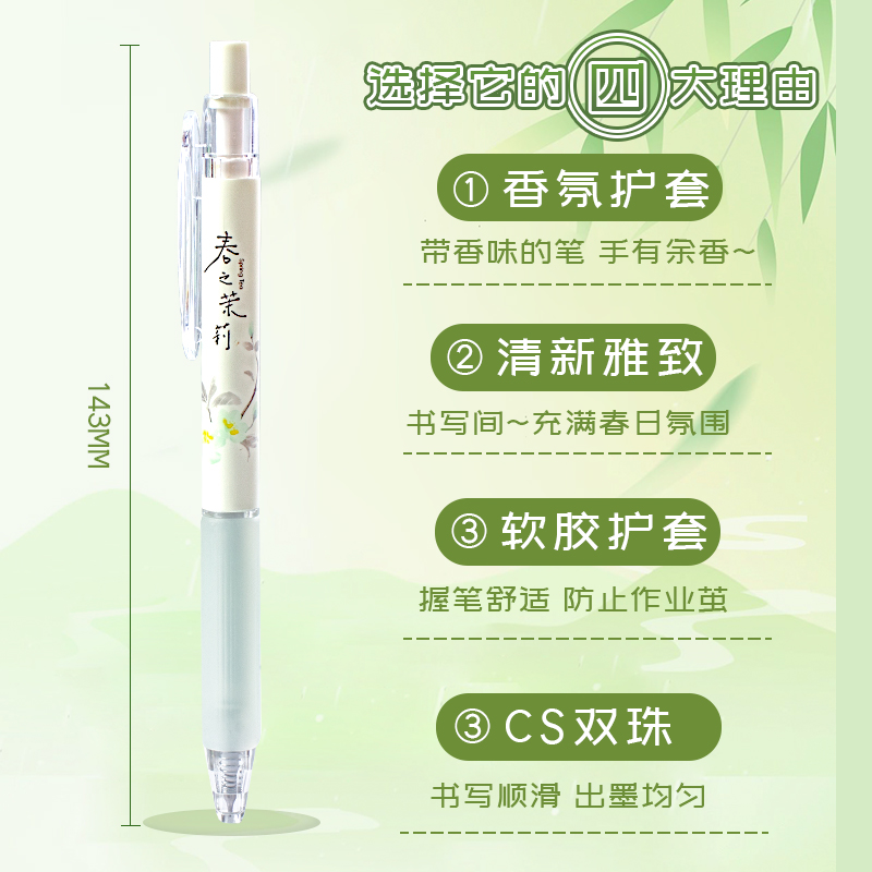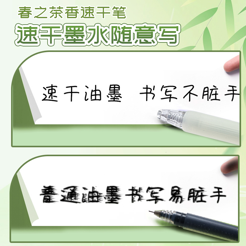 集物社春之茶香香氛护套中性笔高颜值小清新速干按动笔香味笔学生大容量考试顺滑ST双珠刷题笔专用黑色签字笔