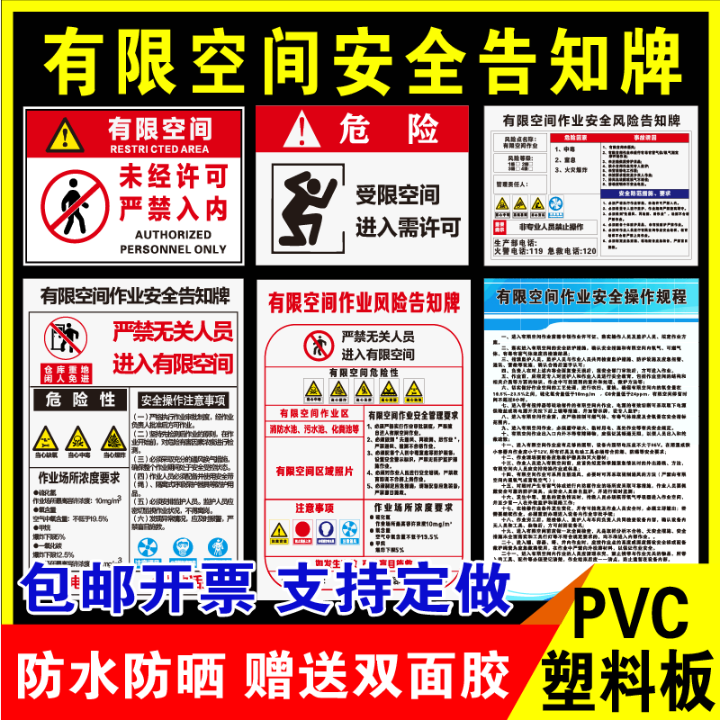 有限空间安全告知牌警告标识密闭受限空间作业警示牌贴纸安全风险点操作规程职业危害标示污水池蓄水池告知牌