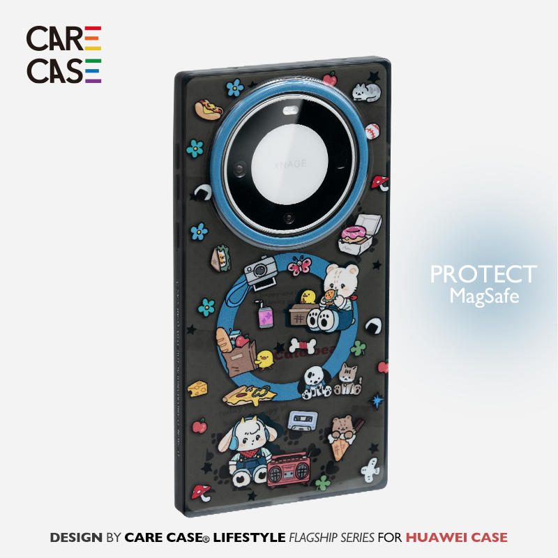 灰岛 小熊日常透黑磁吸方形手机壳 双层印花 适用于华为 原创设计 可爱卡通 磁吸充电