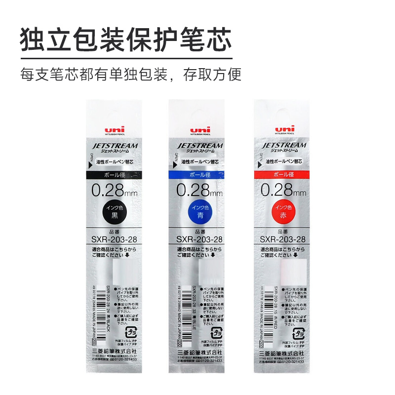 【自营】uni三菱中性笔替芯SXR-203多功能中油笔芯 子弹头细笔尖0.28mm圆珠笔替芯--适用SXN-1003/SXE3-2503