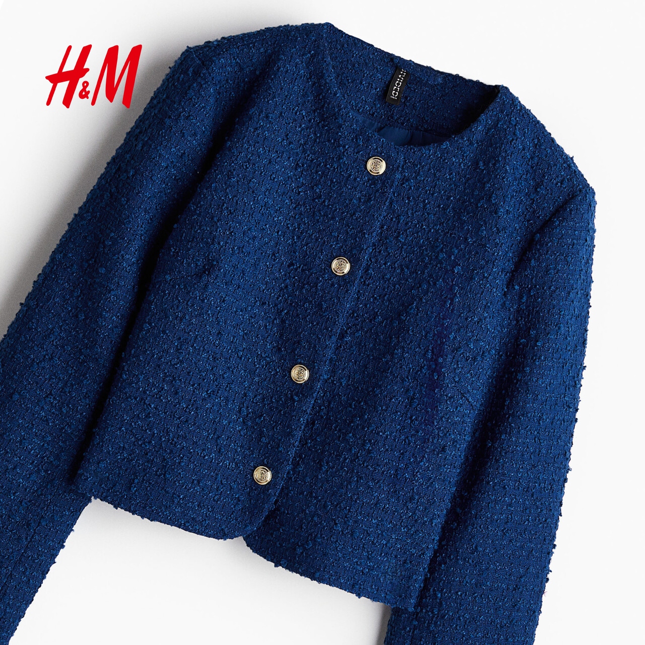HM女装短外套秋季圆领时尚单排扣圈绒千金小香风外套1228992