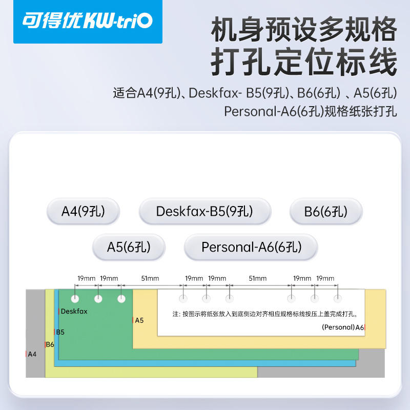 可得优9孔打孔器B59孔打洞机学生白领办公手账DIY贴纸九孔装订机打眼器活页本替芯外壳马克龙配色9909