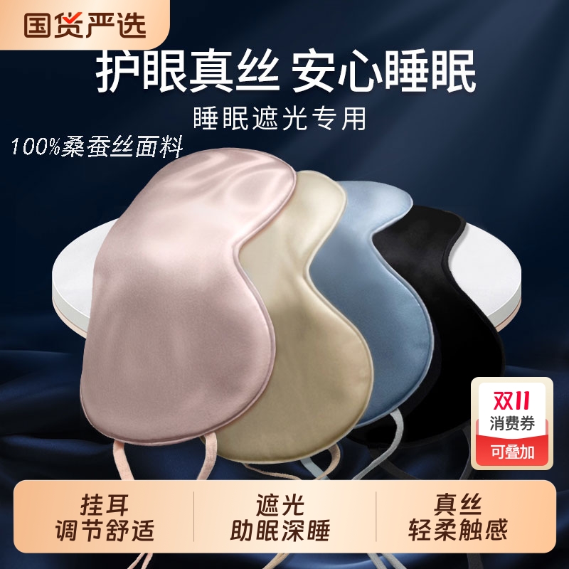 真丝眼罩睡眠专用挂耳式双面桑蚕丝遮光冰敷缓解疲劳男睡觉护眼女