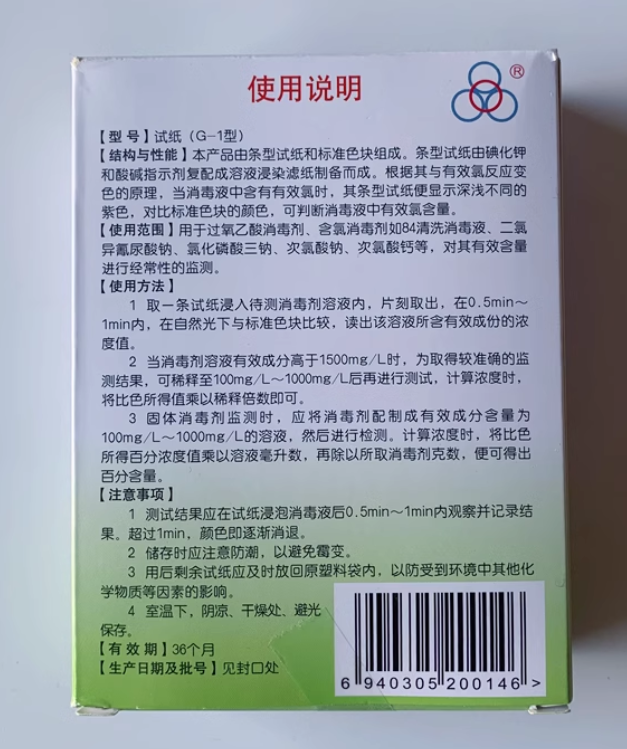 北京四环 G-1消毒剂浓度测试卡 余氯试纸浓度试纸 测试纸 紫外线卡 20本/盒