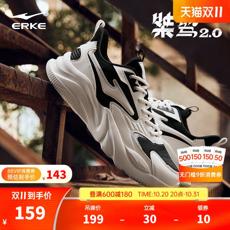 鸿星尔克男鞋运动鞋桀骜皮面秋冬休闲鞋轻便网面透气老爹鞋跑步鞋