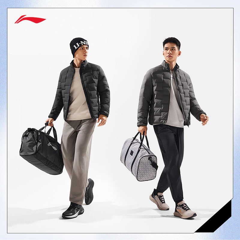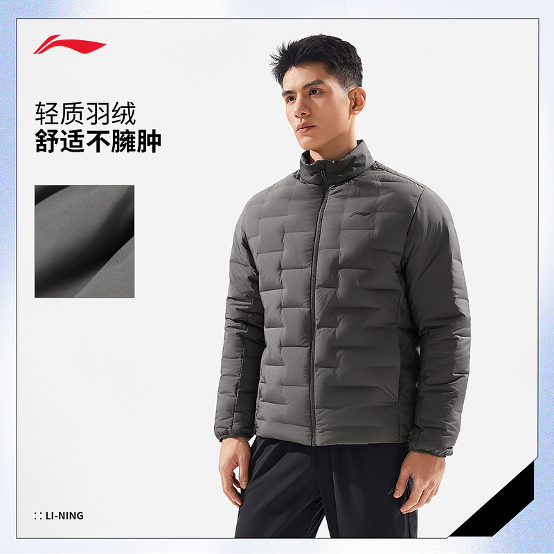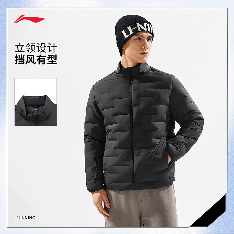 李宁羽绒服 健身系列 男子85%鸭绒锁温保暖防风跑步菱格短羽绒服
