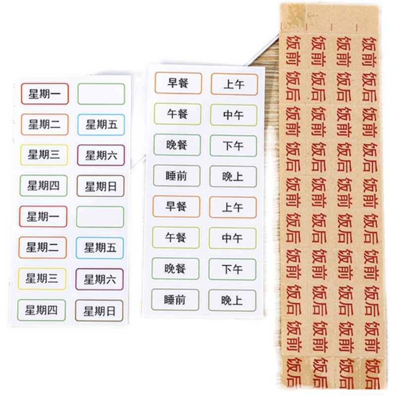 星期不干胶标签吃药提醒早中晚睡前贴纸空白自由备注医嘱便利贴