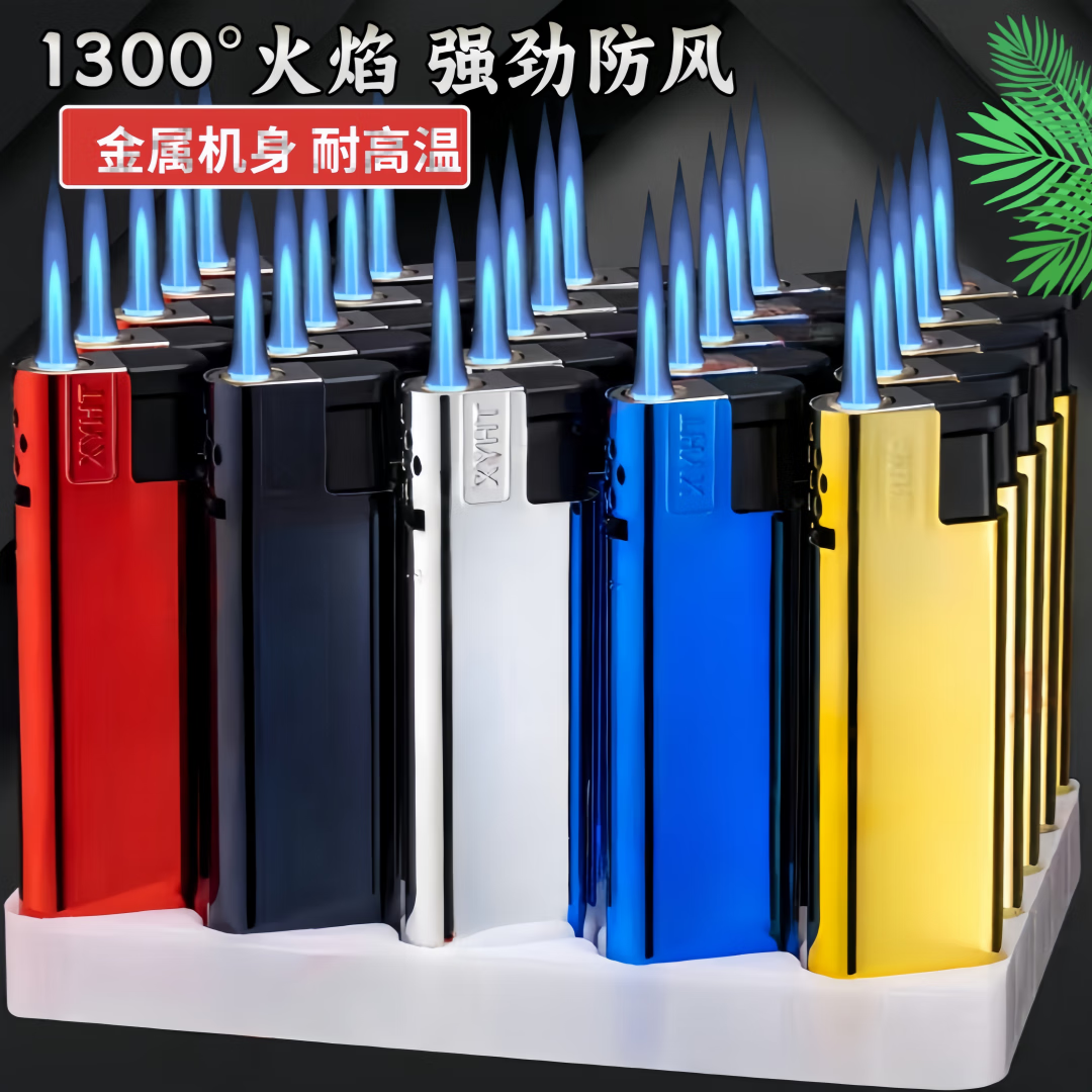 50支金属防风打火机蓝焰直冲可充气厂家直销家用批发防爆火焰