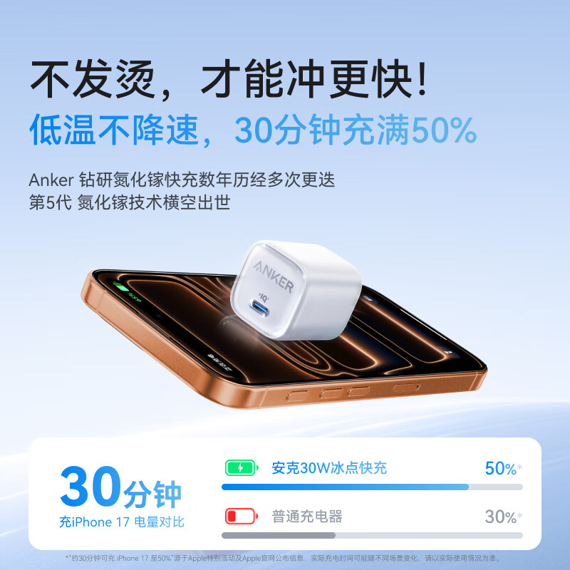 Anker安克冰点充30W氮化镓适用苹果17充电器iPhone16promax充电头20W快充typec插头官方正品手机15充电线套装