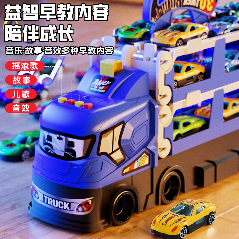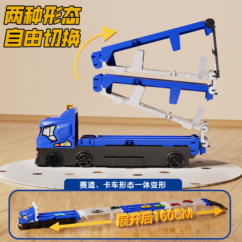 儿童轨道玩具车卡车变形滑行弹射合金小汽车男孩生日礼物小车折叠