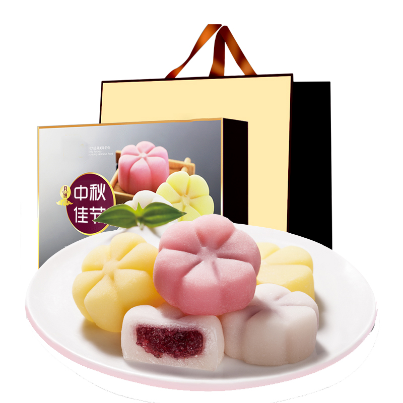 爱一百冰皮月饼奶黄流心月饼水果小月饼散装多口味中秋节礼盒送礼