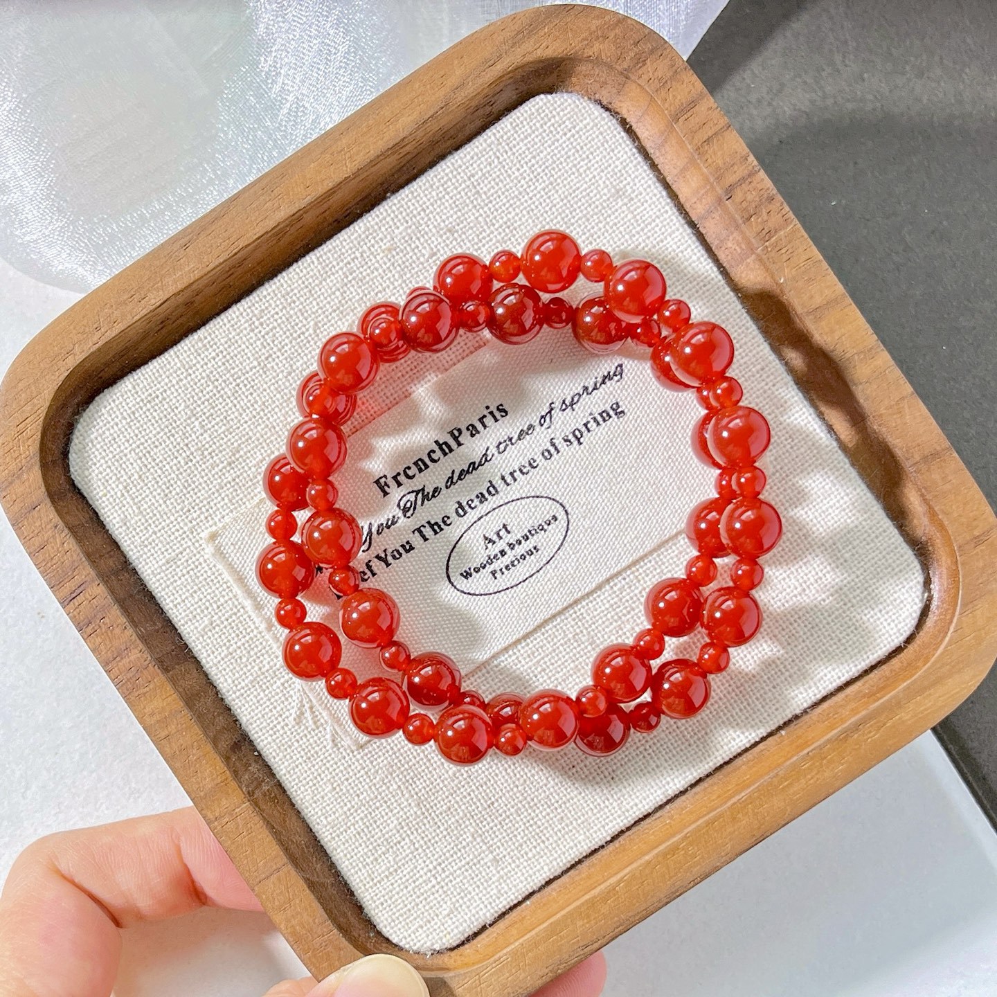 赵露思许研同款双圈红玛瑙手链女时尚百搭气质冰种玉髓本命年手串