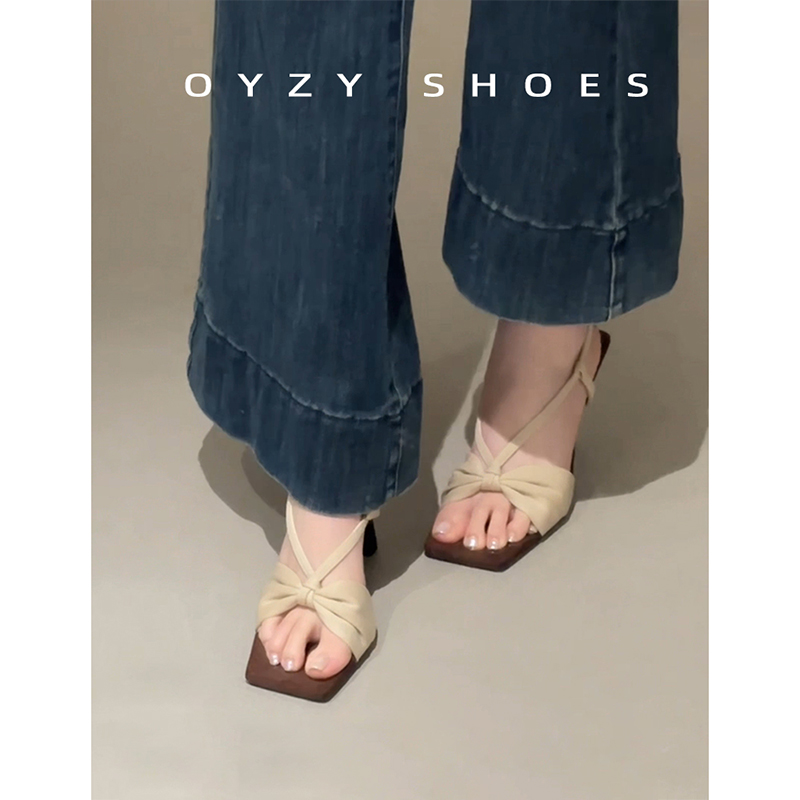 新款复古中古法式凉鞋女小众设计感露趾后绊带细跟高跟鞋夏踩屎感