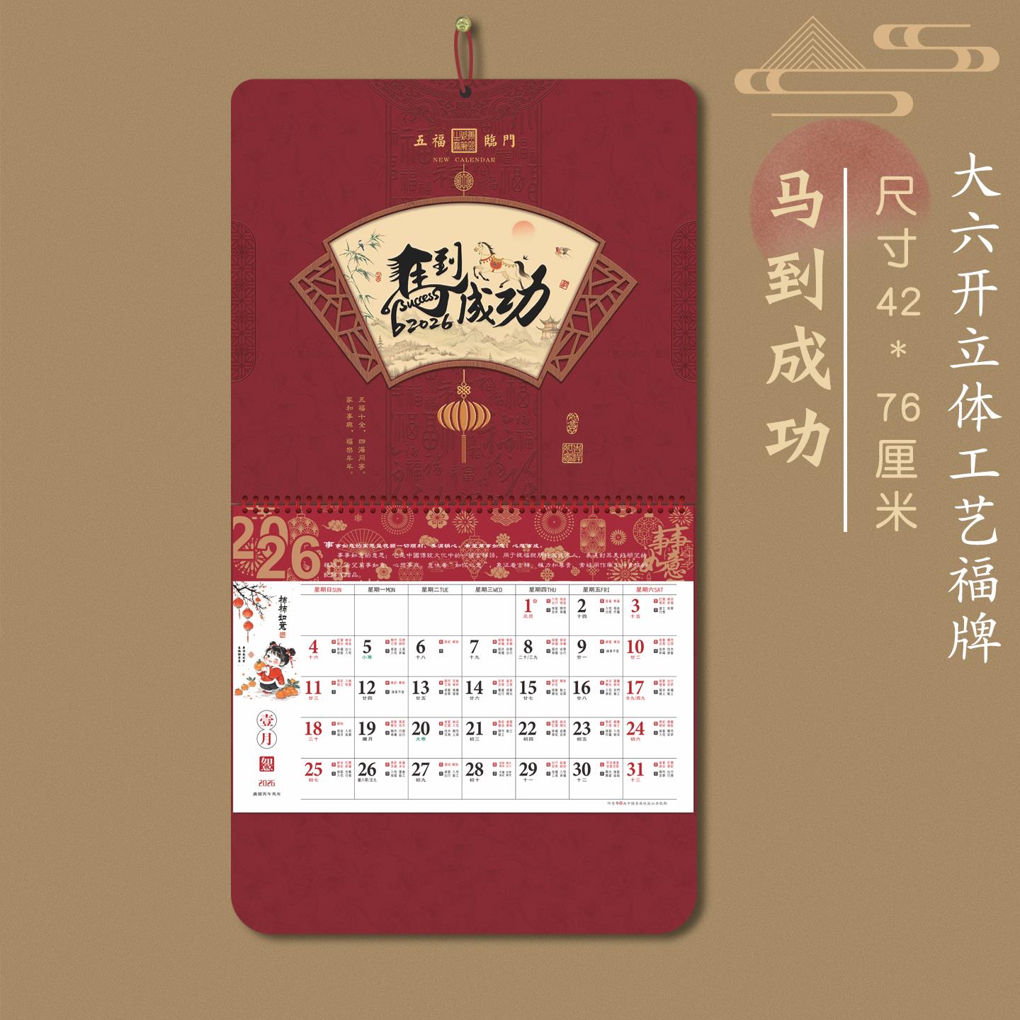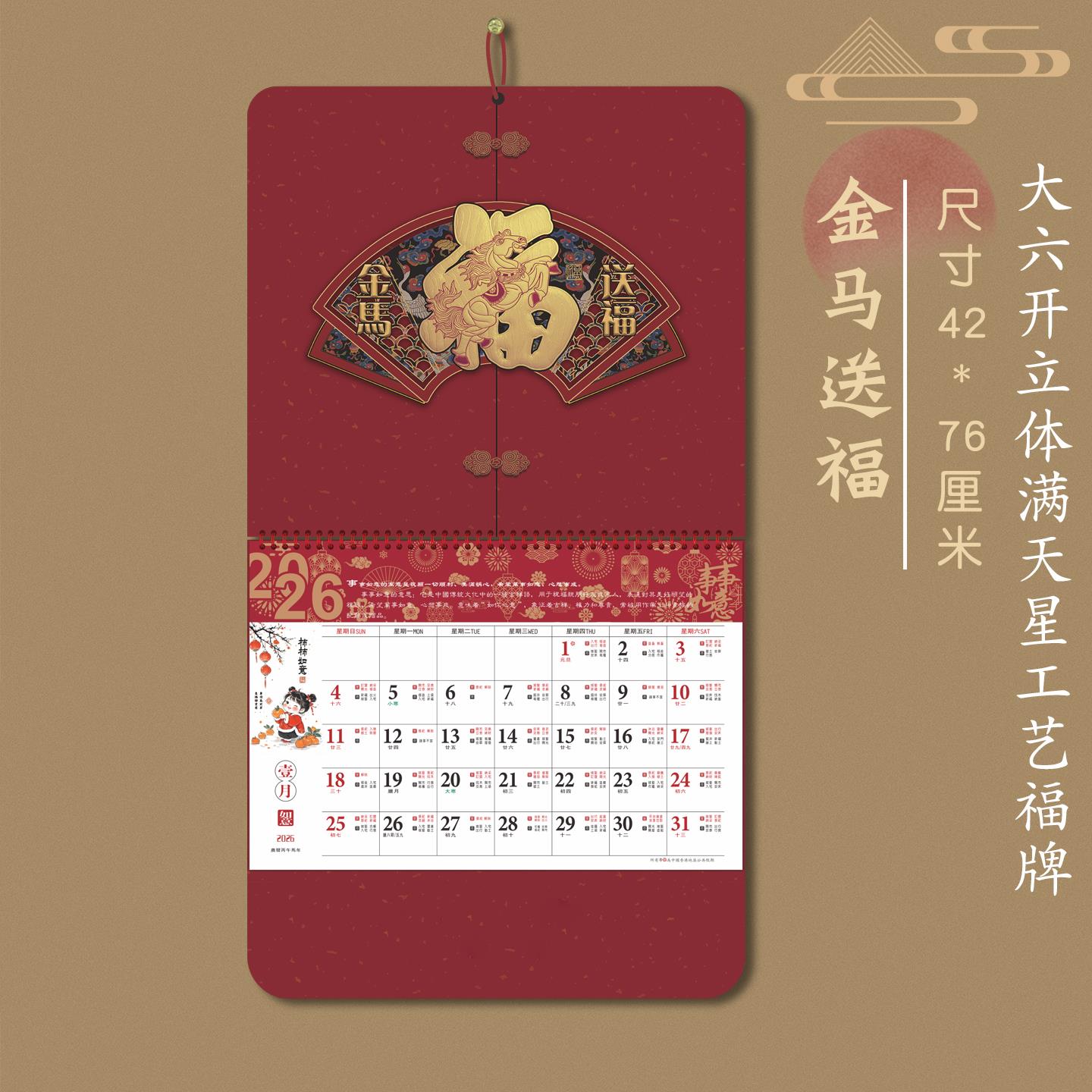 创意加厚2026年日历新款福字挂历公司广告定制宣传马年月历家用挂墙企业新年礼品字体大老黄历挂壁式年历